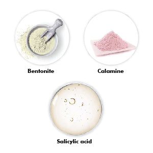 Control sebum. Remove deposition of dead cells and keep skin smooth. Calamine reduces and soothes inflammation caused by acne.